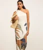 Vestido Mídi Um Ombro Só Estampa Ladrilhos